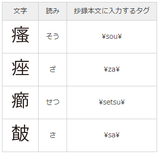 - 下記4種類の漢字を入力したい場合は、UMINで指定したタグを使用ください。